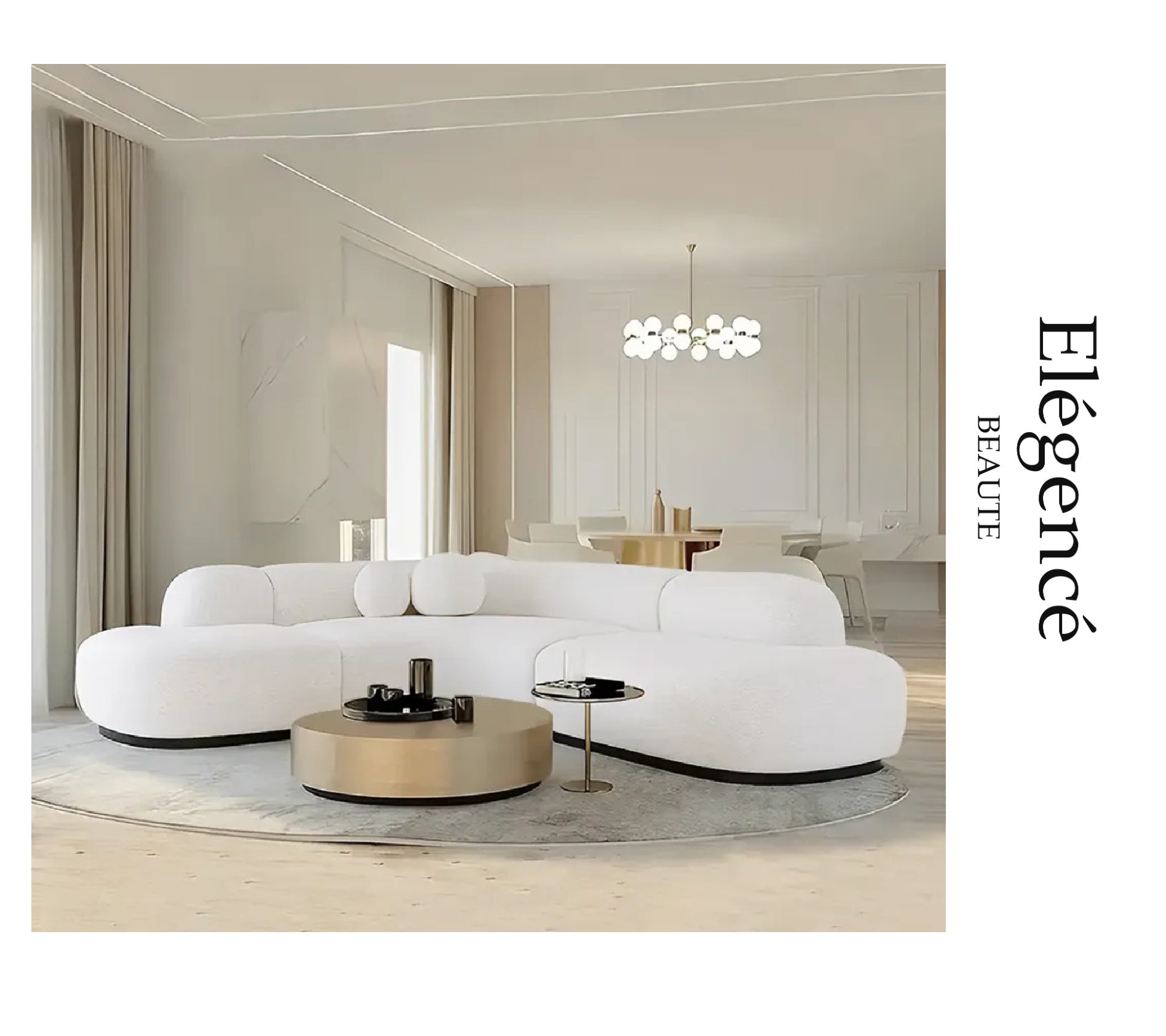 The Elégencé Geo Sofa is the epitome of luxury and sophistication, making it a stunning centerpiece for any space. Upholstered in premium white fabric, this sofa exudes elegance and refinement, effortlessly complementing a wide range of interior styles, from minimalistic to contemporary. The pristine white finish enhances its high-end appeal, while the soft, tufted detailing and graceful curves reflect meticulous craftsmanship.